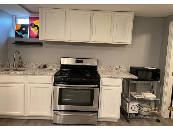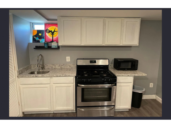 Spacious one bedroom apartment with a large closet, full size appliances and full size washer and dryer. Private entrance with private parking pad. This unit is also on a very quiet street and is close to public transportation. ALL UTILITIES INCLUDED!